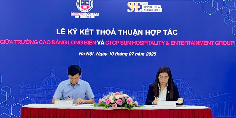 Ngày 10/07/2025, Trường Cao đẳng nghề Long Biên (LBC) đã chính thức ký kết Biên bản Ghi nhớ Hợp tác (MOU) với Công ty Cổ phần Sun Hospitality & Entertainment Group (SHE Group), đánh dấu một bước tiến quan trọng trong việc nâng cao chất lượng đào tạo và mở rộng cơ hội nghề nghiệp cho sinh viên ngành du lịch.